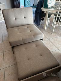 Poltrona Letto Singolo con Materasso, Divano Pouff Letto Singolo Reclinabile Salvaspazio con Cuscino Sfoderabile, Divano 1 Posto in Tessuto con Chaise Longue Regolabile 191x79x90 cm