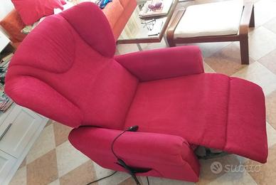 In fondo alla pagina clicca su " ... annunci online" per trovare sempre qualcosa di interessante e salvami come venditore per rimanere sempre aggiornato sulle mie nuove inserzioni. Grazie. Vendo comoda e solida poltrona letto completamente reclinabile, tanto da diventare quasi un pratico letto. Con il suo telecomando a cavo elettrico è possibile abbassare ed alzare separatamente gambe e testa comodamente seduti ed in caso sollevare la persona per aiutarla ad alzarsi. Misura cm. 81L x 81P x 110H circa. Lo schienale dietro cm. 75 ca. È di colore rosso scuro anche se nelle foto sembra molto più chiaro. Il tessuto, in vellutino raso a costine, è in ottimo stato e non presenta abrasioni, tagli o macchie; solo piccoli segni d'usura. È usata, ma tenuta molto bene, in ottimo stato e perfettamente funzionante. Adattissimo ad anziani ed a persone con problemi motori. La poltrona viene venduta con la formula "visto e piaciuto". Visionabile e ritirabile a Sirmione (BS). Non spedisco.
