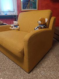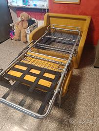 Poltrona color oro . Misure " largha 100 cm. per 90 cm.di profondità " da chiusa , mentre il letto misura 190 cm. x 80cm.
