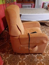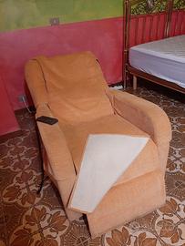 Poltrona Lucrezia, nota ditta Italiana, mai usata, completamente reclinabile con alzata in piedi e ruote per essere spostati. tessuto velluto giallo con fodera di protezione dello stesso mteriale. BELLISSIMA!