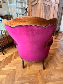 Poltrona antica Luigi XVI in legno massello rivestita in velluto rosso. Si vende causa svuotamento alloggio.