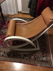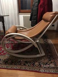 Poltrona a dondolo designer, in vera pelle primo fiore e legno laccato. Acquistata nel 98 al valore di 5 milioni di lire.