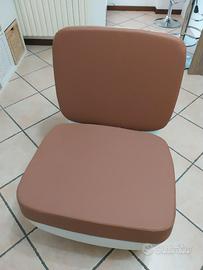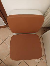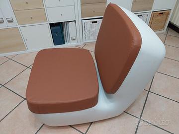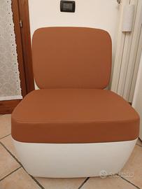 Scocca monoblocco bianca con qualche graffio e cuscini in poliuretano espanso, appena rifatto il rivestimento con ecopelle marrone.