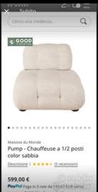 Vendo per acquisto errato. Come nuova appena fatta iqienizzare professionalmente. Prezzo nuovo Euro 599. Solo ritiro a mano Roma. Di piccole dimensioni, ma di grande stile, la chauffeuse PUMP beige è molto più di una seduta d'appoggio! Lo stile capitonné originale ne esalta il look vintage I rivestimento chiaro e uminoso di questa chauffeuse contiene poliestere riciclato. La struttura in legno certificato FSC è rivestita da una generosa imbottitura per offrire un comfort ottimale. Lo schienale fisso imbottito garantisce una seduta estremamente comoda. Solo ritiro a mano zona Cassia Grottarossa. Prezzo già ribassato quindi non trattabile Non rispondo a chi chiede se il prezzo sia trattabile o se è disponibile.Se c'è l'annuncio è disponibile.