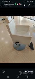 Poltrona makeup in pelle bianca, schienale reclinabile,regolabile in altezza tramite pedale idraulico e poggiapiedi, funzionante perfettamente. In buon stato, vendo per non utilizzo.