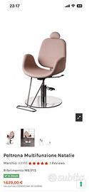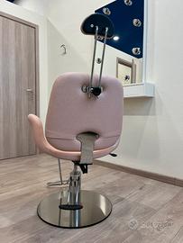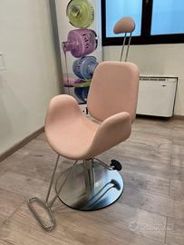 Elegante poltrona rosa adatta per make-up o pedicure con poggia testa regolabile e pedale per alzare o abbassare la seduta. Usata poco e pari al nuovo.