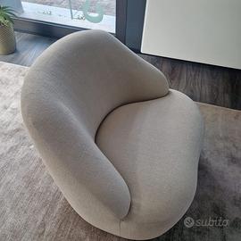 poltrona realizzata in massello di faggio e successivamente imbottita in schiuma HR,a differenza delle altre schiume poliuretaniche risulta essere più performante,ciò significa che una volta che ci solleviamo dalla poltrona,il materiale riprende la sua forma molto più velocemente ,le sue forme sono avvolgenti e la sua seduta molto confortevole,è dotata di una base girevole con meccanismo di ritorno,la poltrona è nuova e viene offerta ad un prezzo promozinale,il suo valore di listino è superiore alle 2000 euro,azienda produttrice &tradition
