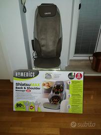 Vendesi poltrona seminuova massaggiante HoMedics da applicare su qualsiasi poltrona o seggiola; 14 programmi di massaggio di intensità variabile, compresi massaggio Shiatsu, massaggio a rullo e mirato per la schiena e spalle, meccanismo massaggio rotativo per un massaggio lombare avanzato, in ottime condizioni.