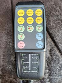 La poltrona ha molteplici funzioni di massaggio (con possibilità di orientamento da lato a lato e dal basso verso l'alto): massaggio completo; solo la parte superiore della schiena, solo la parte inferiore, massaggio a pressione; massaggio con picchiettio; stretching-relax. Possibilità di reclinazione dello schienale e contestuale estensione del poggiapiedi, con ulteriore funzione di massaggio vibrante gambe piedi.