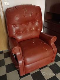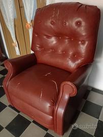 Vendo poltrona massaggiante reclinabile. Con sistema di sollevamento per anziani. Dotata di ruote bloccabili. La similpelle è spaccata in due punti. Regalo copri poltrona in stoffa e cuscini.