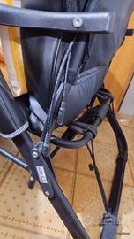 Colore nero, simil pelle integra, con cavi di collegamento, cuscino a righe bianco e giallo.