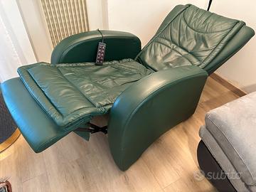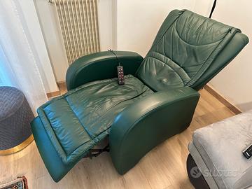 Elegante ed avvolgente poltrona con massaggio shiatsu a due motori con vibro massaggiatore della pediera e della seduta. Ogni posizione relax, di riposo, lettura o per guardare la TV può essere impostata attraversando tutte le reclinazioni intermedie. La poltrona è costituita da un meccanismo a due motori (attuatori) che consente di ottenere la posizione relax con movimenti indipendenti dello schienale e della pediera. Il massaggio è localizzato nello schienale ed è eseguito da due corpi orbitali massaggianti dotati di quattro sfere ciascuno e applicati su un carrello che scorre lungo lo schienale. Non spediamo, ritiro a carico dell’interessato.
