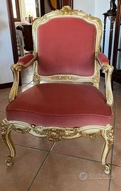 Questa poltrona ha uno stile molto elegante e decorativo, tipico dei mobili classici di ispirazione barocca o rococò.