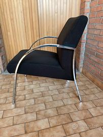 Poltrona con braccioli in acciaio cromato rivestimento tessuto nero trama stuoia no spedizione