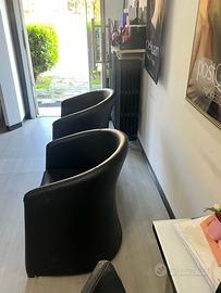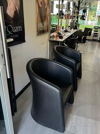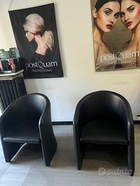 Vendesi coppia di poltroncine professionali dal design moderno ed elegante, colore nero. La seduta è caratterizzata da una linea avvolgente a pozzetto che garantisce il massimo comfort, con un rivestimento in eco-pelle di alta qualità lavorata (effetto grana). Le poltrone sono state utilizzate in un salone professionale, ma si presentano in ottime condizioni generali, senza strappi o segni evidenti di usura. Perfette per chi desidera rinnovare l’arredamento di un’attività commerciale, uno studio professionale o per dare un tocco industrial/moderno a casa propria. • Colore: Nero opaco. • Materiale: Eco-pelle resistente e facile da pulire. • Stato: Usato in ottime condizioni. • Quantità: 2 pezzi (vendibili preferibilmente in coppia).