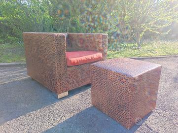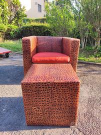 poltrona di design in pelle di coccodrillo , firmata Minotti , made in italy completa di cuscino e pouf conservata benissimo , proprietà di famiglia dal momento del acquisto fino ad ora disponibile al trasporto su Bologna e dintorni previo accordo con eventuale acquirente prezzo trattabile