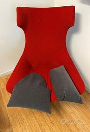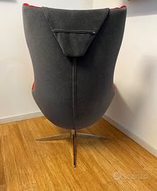 E' una poltrona avvolgente in tessuto con schienale alto, con base girevole e con comodi cuscini poggiatesta e poggiareni rimovibili.