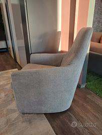 Poltrona moderna in tessuto lavorato color grigio chiaro, nuova di expo da 6 mesi.
