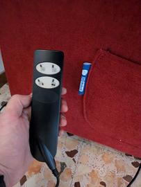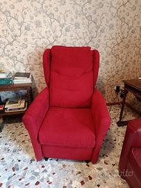 Prezzo trattabile. Vendo poltrona motorizzata dotata di sistema di reclinazione e sollevamento. Perfetta per anziani. La seduta è rivestita in tessuto di colore rosso e integra una tasca laterale per l'alloggiamento del telecomando a filo in dotazione. Il comando dispone di quattro pulsanti che gestiscono il movimento dello schienale, l'estensione della pediera e la funzione alzapersona (visibile in foto), agevolando il passaggio dalla posizione seduta a quella eretta. Misure: Lunghezza: 80 cm Altezza: 105 cm Larghezza (tra i poggia braccia): 71 cm
