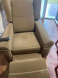 Vendo poltrona motorizzata perfettamente funzionante. Con telecomando. Tessuto tipo nappina . Unico difetto una piccola bruciatura sul bracciolo . Si alza anche per aiutare l alzata da seduto.