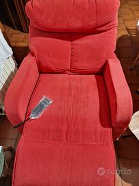 Vendo poltrona motorizzata con seduta extra large, colore rosso. In alcuni punti il tessuto presenta alcuni fili tirati a causa dei gatti. Ritiro entro breve tempo. Prezzo trattabile.
