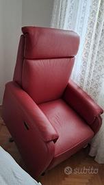 Poltrona reclinabile con alzapersona Poltrona e sofà pelle vera rossa 400, misure L 82, P 85/145(aperta) H 112, Meccanismo elettrico perfette condizioni