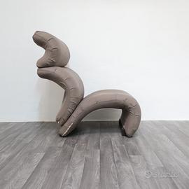 Poltrona originale anni ’70-’80, recentemente ritappezzata con un tessuto moderno di alta qualità che esalta la sua silhouette scultorea. Il design richiama l’iconico Modello San Luca, progettato da Achille e Pier Giacomo Castiglioni per Bernini, con la caratteristica seduta avvolgente e il profilo sinuoso.