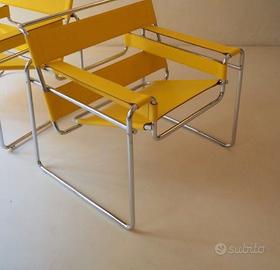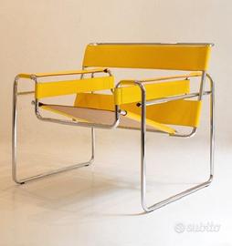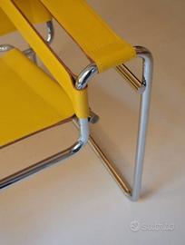 Poltrona NUOVA Wassily B3 di Knoll, disegnata da Marcel L. Breuer in cuoio in tonalità Giallo color Senape, struttura in acciaio cromato Mannesmann. In vendita PER REALIZZARE UN PERFETTO ABMIENTE SALOTTO altre due B3 in cuoio SENAPE. IN TOTALE 4 DISPONIBILI TUTTE NUOVE.