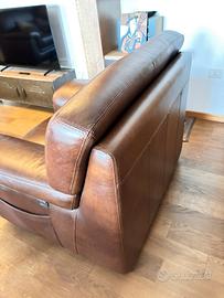 Causa trasferimento, vendo poltrona o anche coppia del 2021 Delta salotti, vera pelle testa di moro artigianale, cucita a mano. Poltrona imponente da 110x100cm, rialzata da terra con piede in legno massello, porta riviste laterale. Tenuta quasi pari al nuovo, pelle che piu invecchia e piu diventa bella.