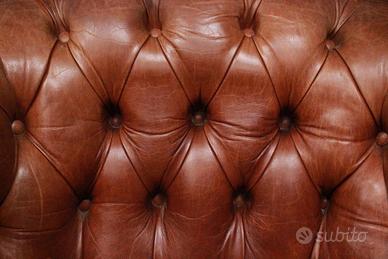 Chesterfield è un nome inglese che è garanzia di qualità. Questa poltrona degli anni ’80 circa (vintage), è un modello club (dallo schienale basso) in pelle marrone rame, ed al momento risiede nei nostri magazzini a Roncadelle (Brescia). La grande e comoda imbottitura è decorata nel tradizionale stile capitonné, inoltre le borchie decorative che impreziosiscono il tutto e la forma lievemente stondata fanno di questo oggetto non solo uno splendido pezzo di design, ma anche un comfort per abbellire e rendere elegante qualsiasi ambiente.
