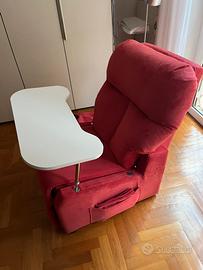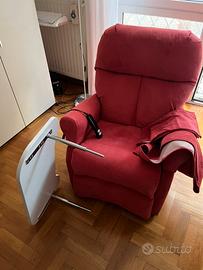 POLTRONA ORTOPEDICA a 2 motori elevabile, con bracciolo estraibile e TAVOLINO.