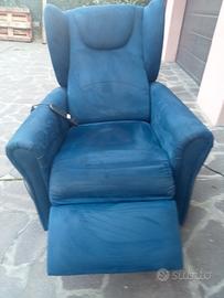 causa inutilizzo per aggravamento figlia disabile , cedo poltrona poco utilizzata, reclinabile, motorizzata per inclinazione, con telecomando rivestimento tessuto blu,alzata gambe,ruote per spostamenti