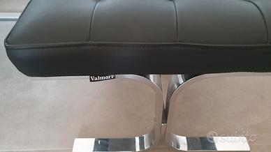 Vendo bellissima poltrona della ditta Valmori modello Mozart con il suo pouf ottomano, rivestite in pelle nera primo fiore e con struttura massiccia in acciaio cromato, perfette senza segni.