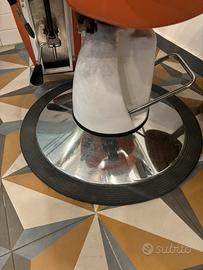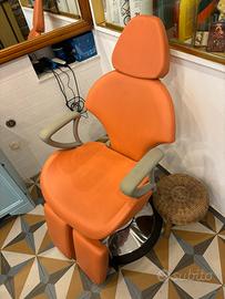Poltrona podologica con base cromata molto stabile. Il movimento della poltrona avviene per mezzo di pompa a gas in grado di alzare la seduta da cm.56 a cm.67 con fermo.