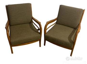 VENDUTE SIA SINGOLARMENTE CHE IN COPPIA PREZZO COPPIA 2200 euro PREZZO CADAUNA 1400 euro Stile: Italian, Vintage, Mid-Century Periodo del design: 1950 - 1959 Paese di produzione: Italia Creatore: Buffa, Paolo Ulteriori informazioni sull'articolo: Coppia di poltrone di Paolo Buffa, produzione Italiana fine anni'50, con struttura in legno di ciliegio ed acero con braccioli curvi. Tappezzeria originale in tessuto color verde oliva in perfette condizioni. Stato: Perfette condizioni Materiale: Ciliegio, Acero, Tessuto Colore: Marrone, Verde Oliva Altezza: 78 cm/ Altezza seduta: 37 cm/ Lunghezza: 63,5 cm/ Profondità: 68 cm Materiale: Ciliegio, Tessuto, Acero Colore: Marrone, Oliva #modernariato #midcentury #paolobuffa #italian #teak #acero #rovere