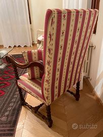 Poltrona Papale Prezzo di listino €500.00 Trono in noce epoca metà '700. Considerata poltrona Papale Perfettamente restaurata con anche trattamento antitarlo e tappezzeria perfettamente tenuta. Su richiesta si possono fornire altre foto. Trasporto a carico di chi acquista.