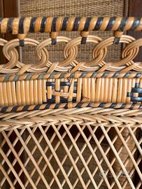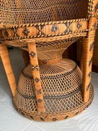 Trono in rattan naturale intrecciato e vimini di design, modello Peacock / Emmanuelle, originale vintage anni ’60.