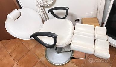 Causa cessata attività vendo poltrona pedicure in ottimismo stato. La sedia è girevole, lo Schienale è reclinabile, la poltrona è regolabile in altezza e la regolazione gambe è per singola gamba.