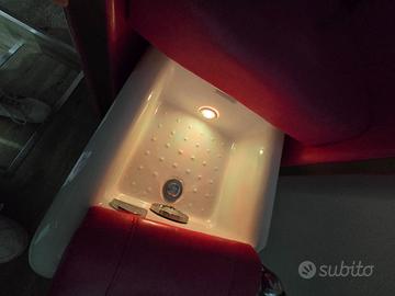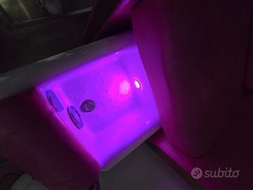 Poltrona con schienale massaggiante e inclinante.. con vasca pedicure incorporata con acqua calda e fredda Idromassaggio e cromoterapia..unica perché ordinata in modo personalizzato fuxia con rifiniture oro..la vendo perché ne ho due uguali..e non la utilizzo