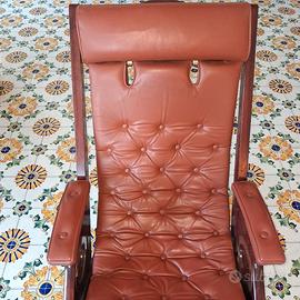 Poltrona stile Old Marina in mogano e pelle vera, condizioni ottime.