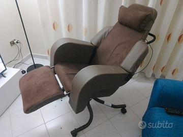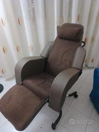 poltrona per anziani regolabile, con cintura sicurezza, ruote, regolabile, in pelle di ottima qualità, come nuova!! mai usata. ritiro presso quartiere Barra.