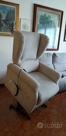 Poltrona alzapersona elettrica con meccanismo per distendere gambe e reclinare schienale. Colore beige. Ancora in garanzia.