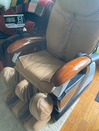 Poltrona in struttura d'acciaio con reclinazione automatica, 4 tipi di massaggio Shiatsu: Kneading (impasto)- Knock (picchiettamenti)- Scratch (colpetti)- Tump Press (presso terapia). Funzione 3D (combina knock, kneading e Tumb Press). Intensità e ampiezza di massaggio regolabile. 3 regolazioni di fine corsa in base all'altezza della persona. Scelta della fascia del corpo che si desidera massaggiare (parte alta o parte bassa della schiena), e del punto specifico di massaggio. 5 Programmi di massaggio automatico. Air bags lombari, massaggio presso-terapia, 4 air bags glutei e cosce, pressione air bags regolabile a 3 livelli d'intensità. Massaggio presso-terapia 10 air bags gambe, massaggio plantare con presso-terapia e vibrazione, massaggio pressoterapico alle braccia. Incluso comando a filo, schermo lcd, lettore MP3 e cuffie.