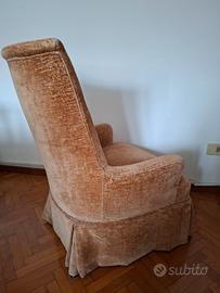 Piccola poltrona usata rivestita in velluto color biscotto. Sana e solida si inserisce facilmente in camera da letto , in salotto, nell ingresso ecc. Alta cm 82 - larga cm 60 ritiro in luogo