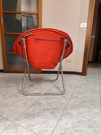 Vendo comoda poltroncina relax pieghevole di colore rosso, ideale per cameretta, studio o come seduta aggiuntiva salva-spazio.
