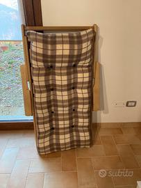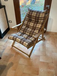 Poltrona pieghevole struttura in legno con cuscino imbottito tre posizioni regolabili in ottimo stato come da foto ,misure chiusa cm.122 altezza ,cm.72 larghezza profondità cm.12.Non spedisco solo ritiro in zona viterbo