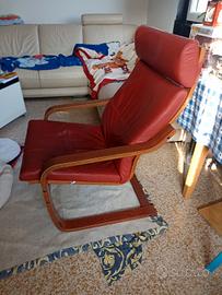Poltrona Poang in pelle rossa, non è Ikea, sia la seduta che lo schienale son ancora in ottime condizioni, la pelle e morbida e non secca come i materiali del I..a, come presentata in foto, ereditata anni fa da i nonni, purtroppo non ho spazio dove metterla,
