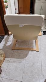Vendo poltrona Poäng Ikea colore betulla. Ottime condizioni. Completa di imbottitura beige. Solo i braccioli appaiono leggermente scuriti per via dei cuscini che sono stati posizionati ma che possono essere rimossi (hanno il velcro). Insieme alla poltrona verranno forniti anche i suddetti cuscini per rendere l'appoggio del braccio più confortevole.