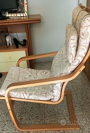 Un classico per le poltrone Ikea. La Poang è in betulla piegata a vapore color naturale, imbottitura a fantasia + poggiatesta