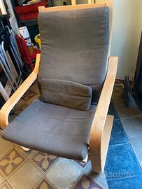 Poltrona Poang Ikea con suo cuscino in cotone marrone. Buone condizioni.